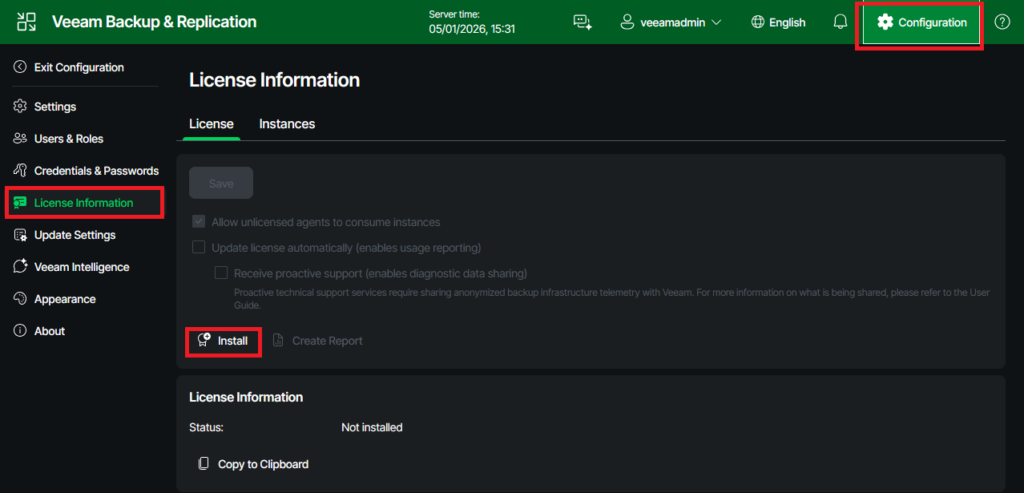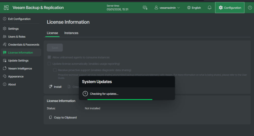 As mentioned at the beginning, I have an NFR license. In order to use and test all functions, I must activate them on the VBR server.