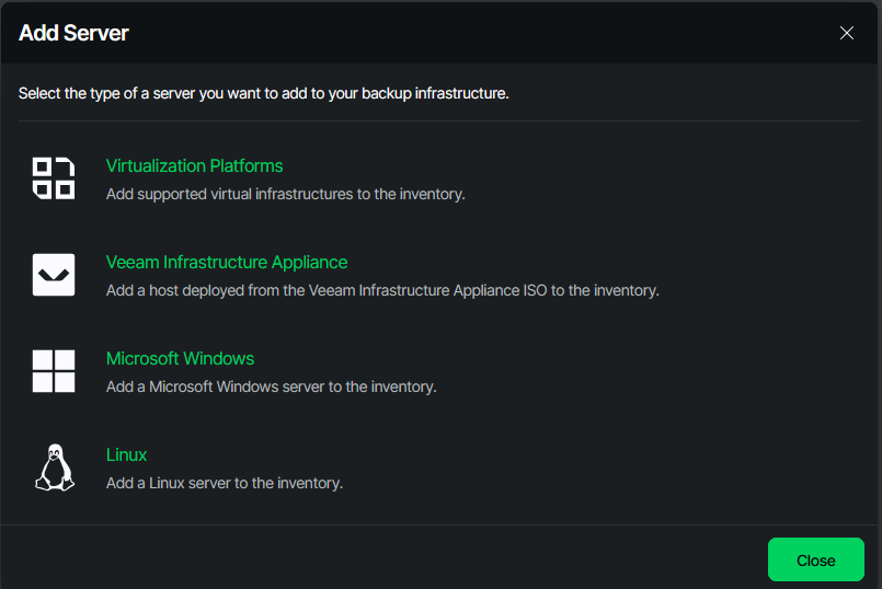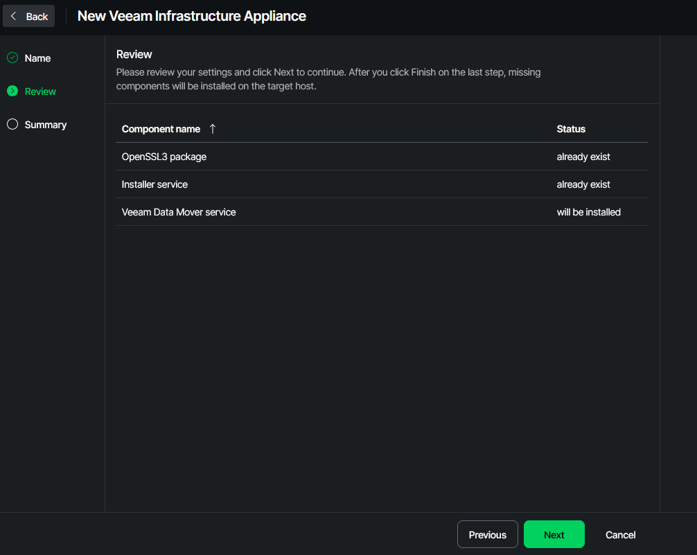Adding the Infrastructure Appliance to VBR