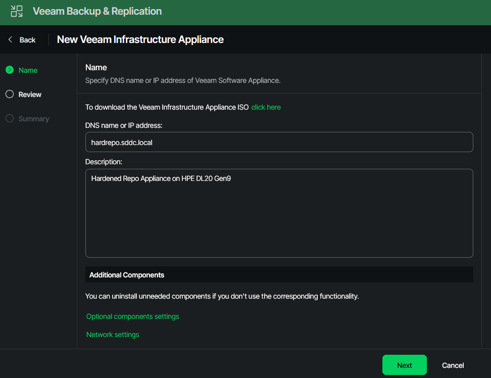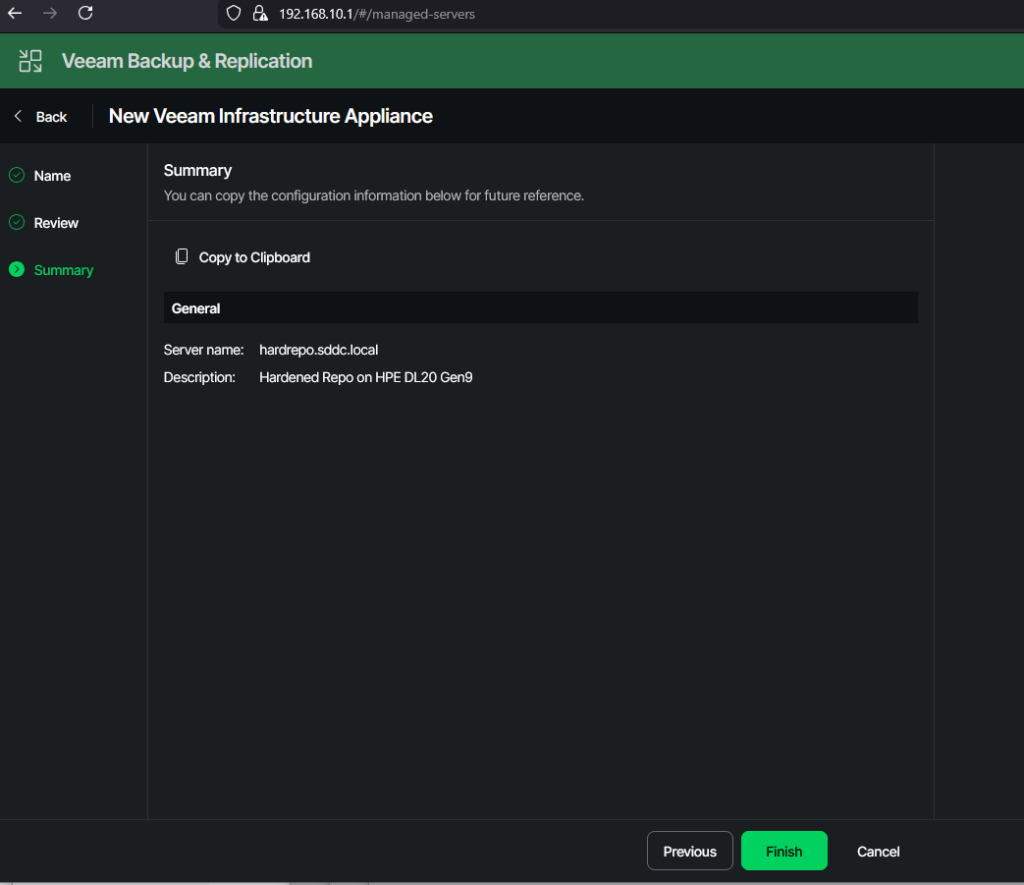 In the third part we bring it all together. We add the Infrastructure Appliance to the VBR server. Then we set it up as a hardened repo, which will later on serve as our primary backup target.